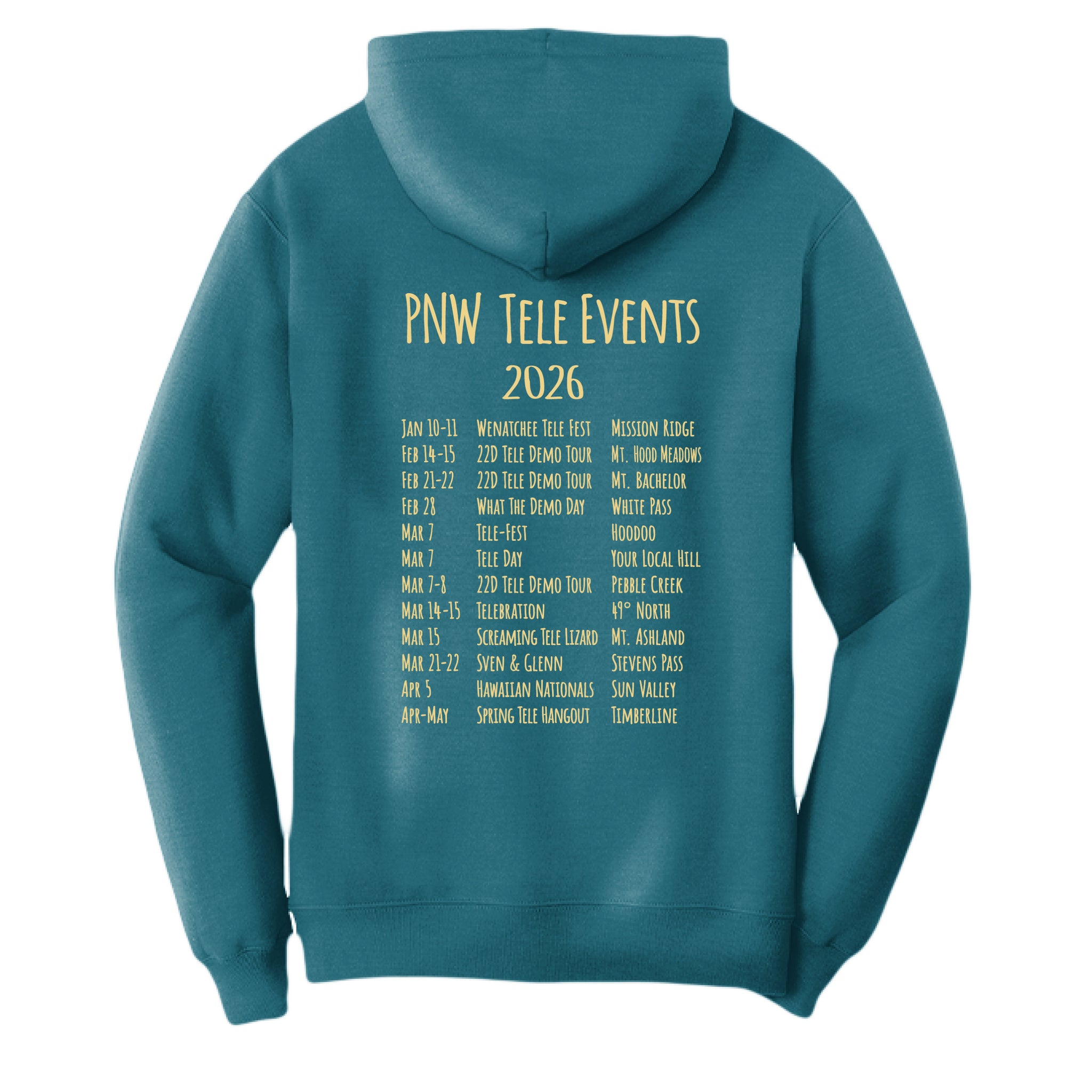 A hoodie version of the popular PNW Tele Events T-Shirt.